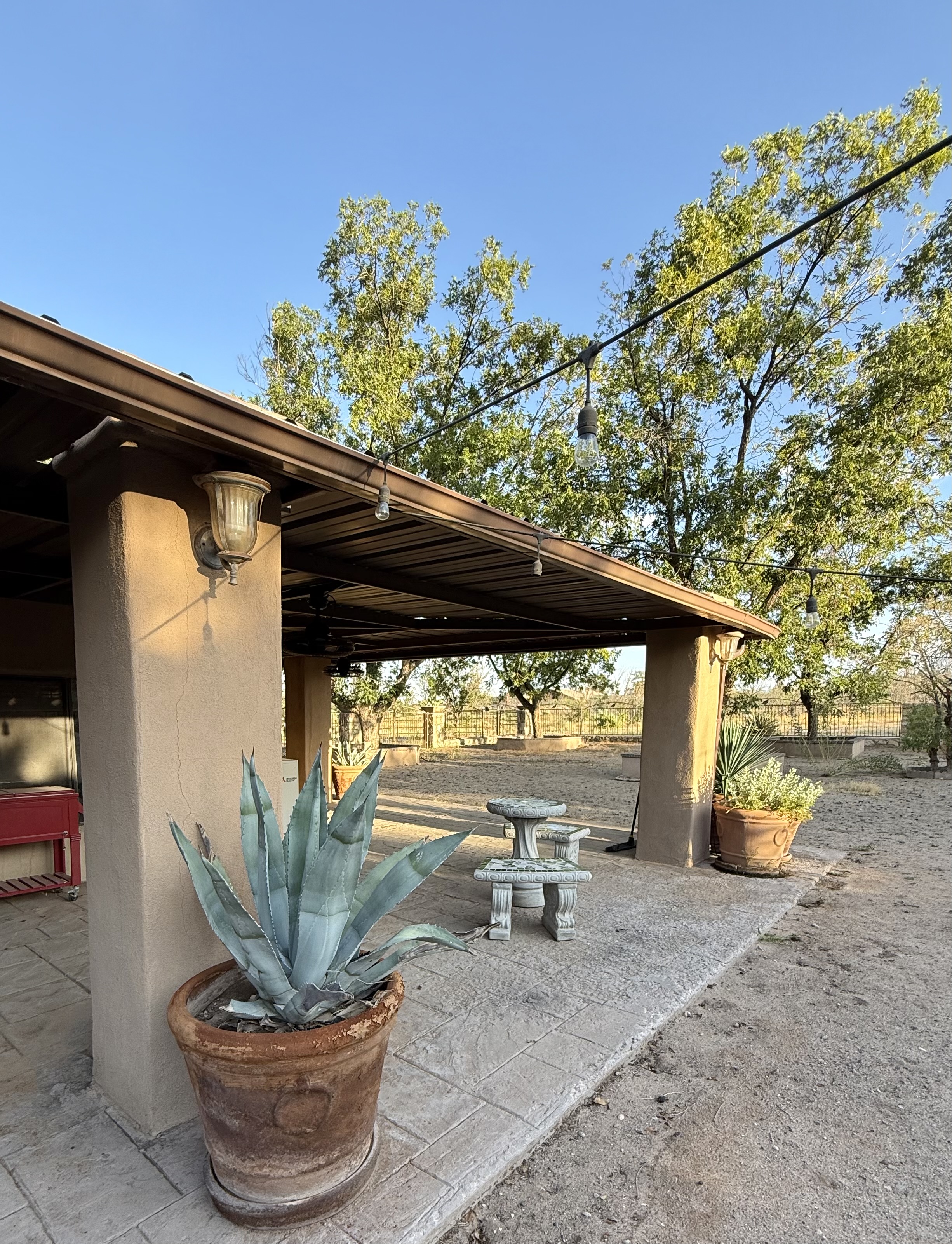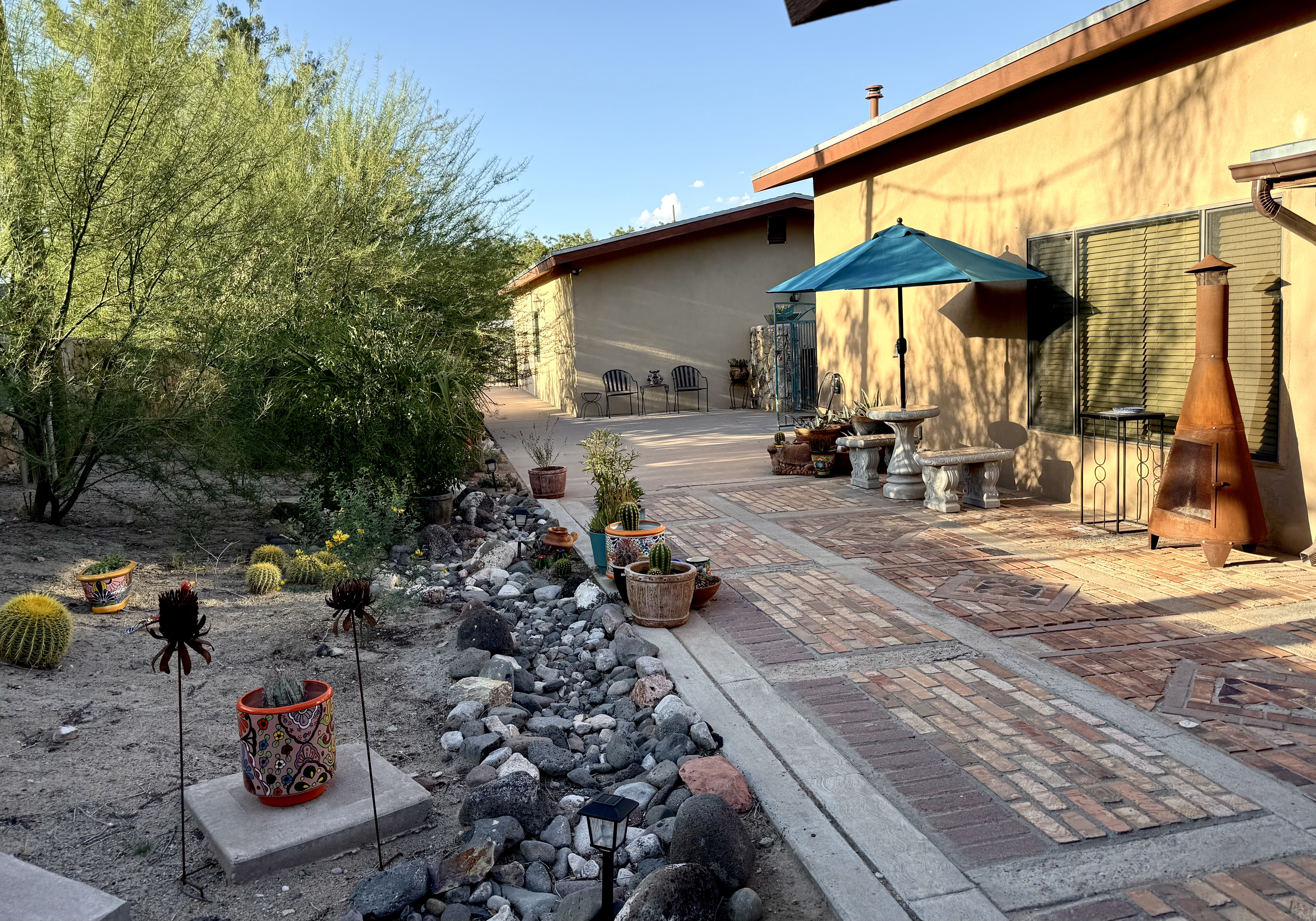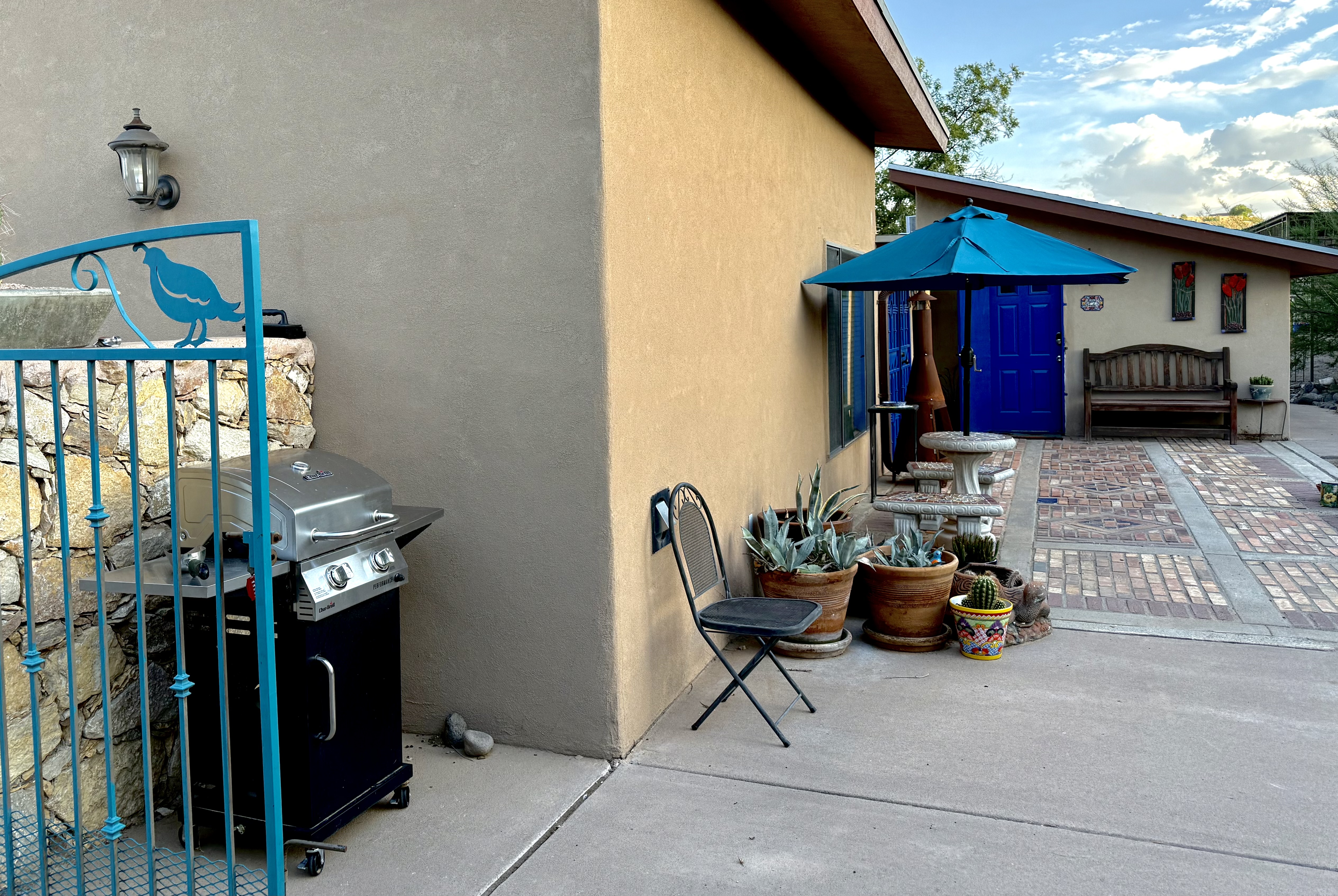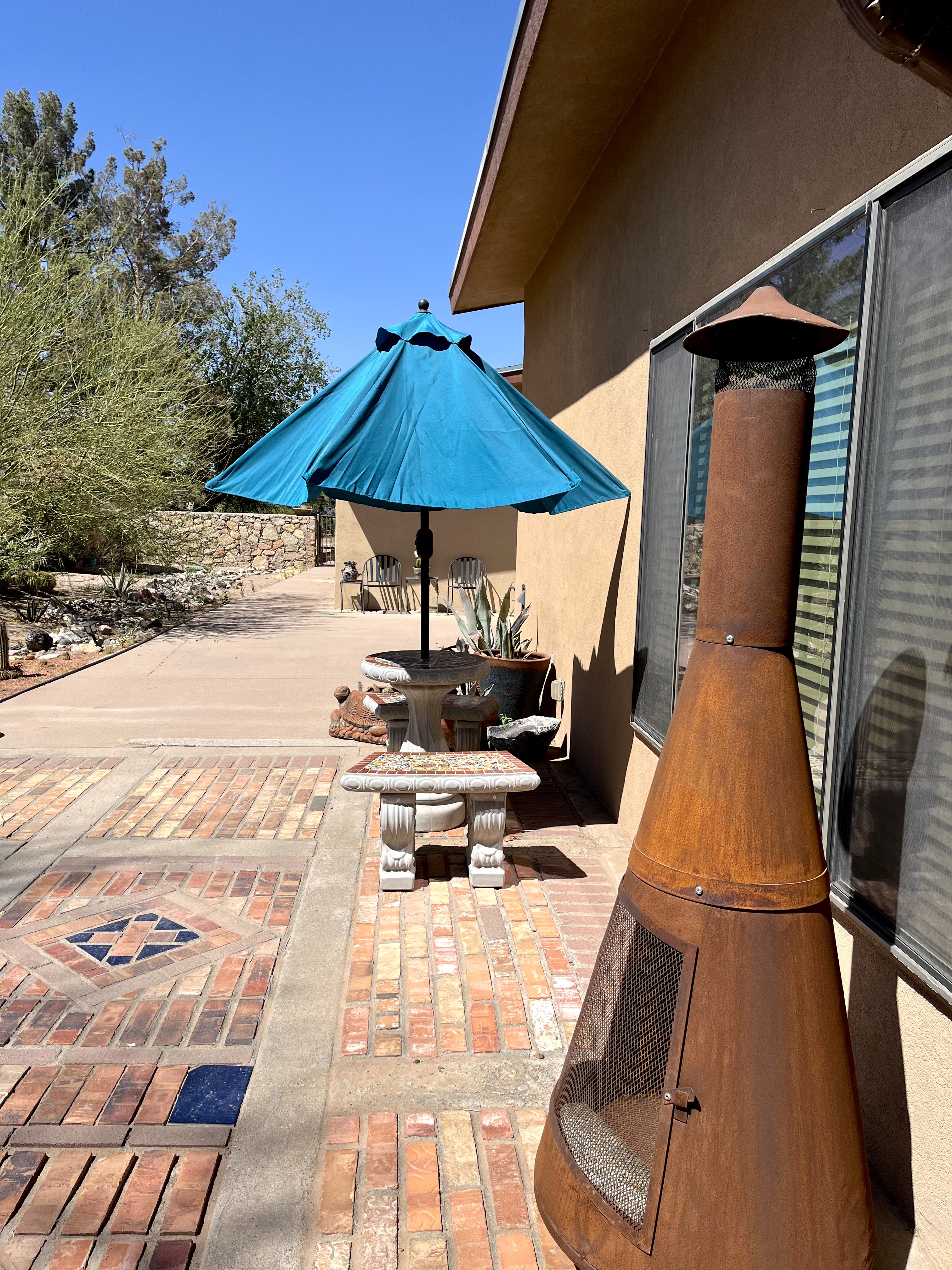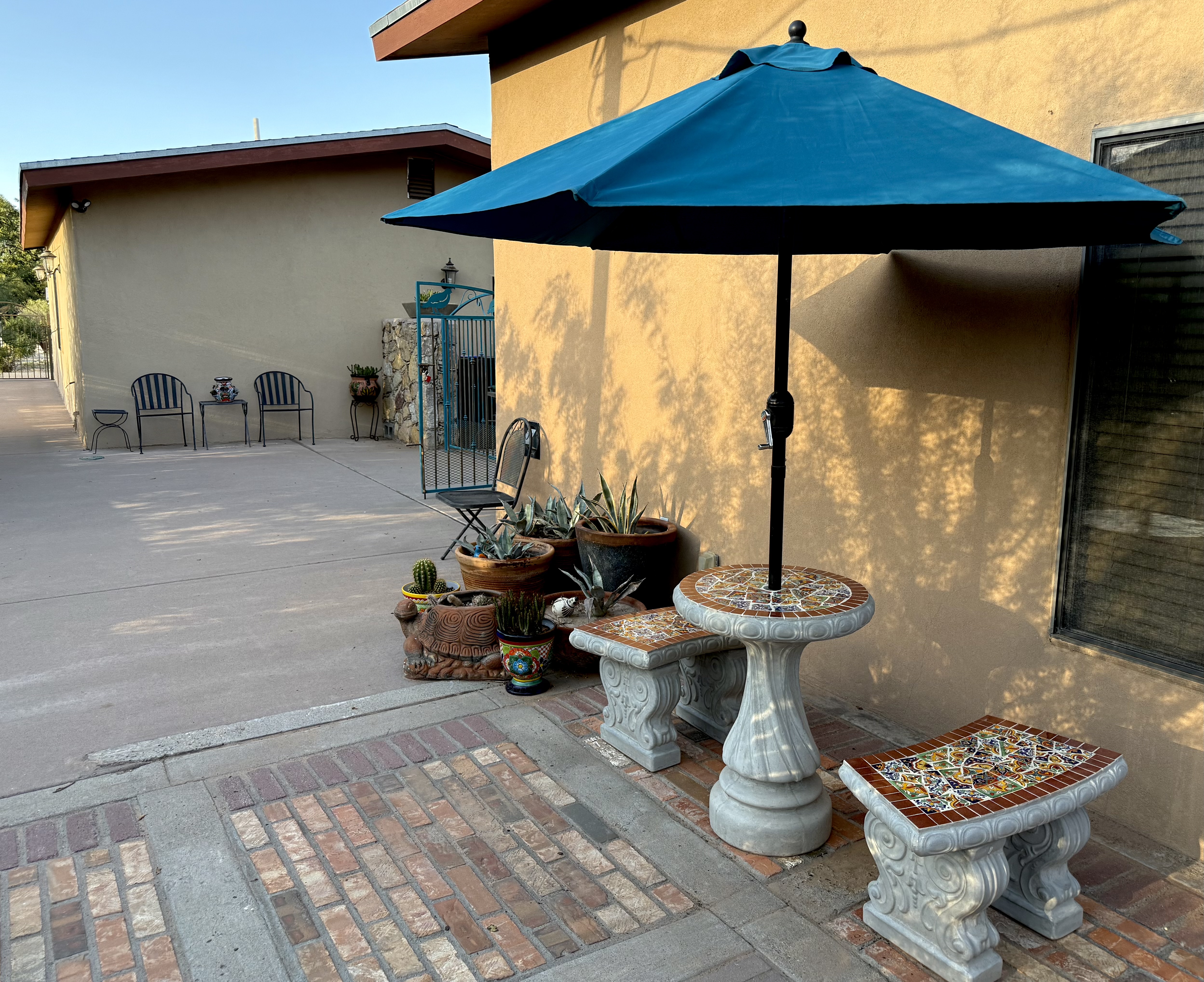 - Everything about our stay was easy and convenient! Christopher went above and beyond with clear and easy driving and entry instructions, and we enjoyed the helpful suggestions on where to eat, etc that he took the time to compile and leave for our stay. The sunscreen and bottled waters were much appreciated, given the hot dry climate, and it was a delight to eat dinner outside at the clean and beautiful mosaic table and benches. The fully fenced backyard was a haven for our pups to run and play after a long day on the car!