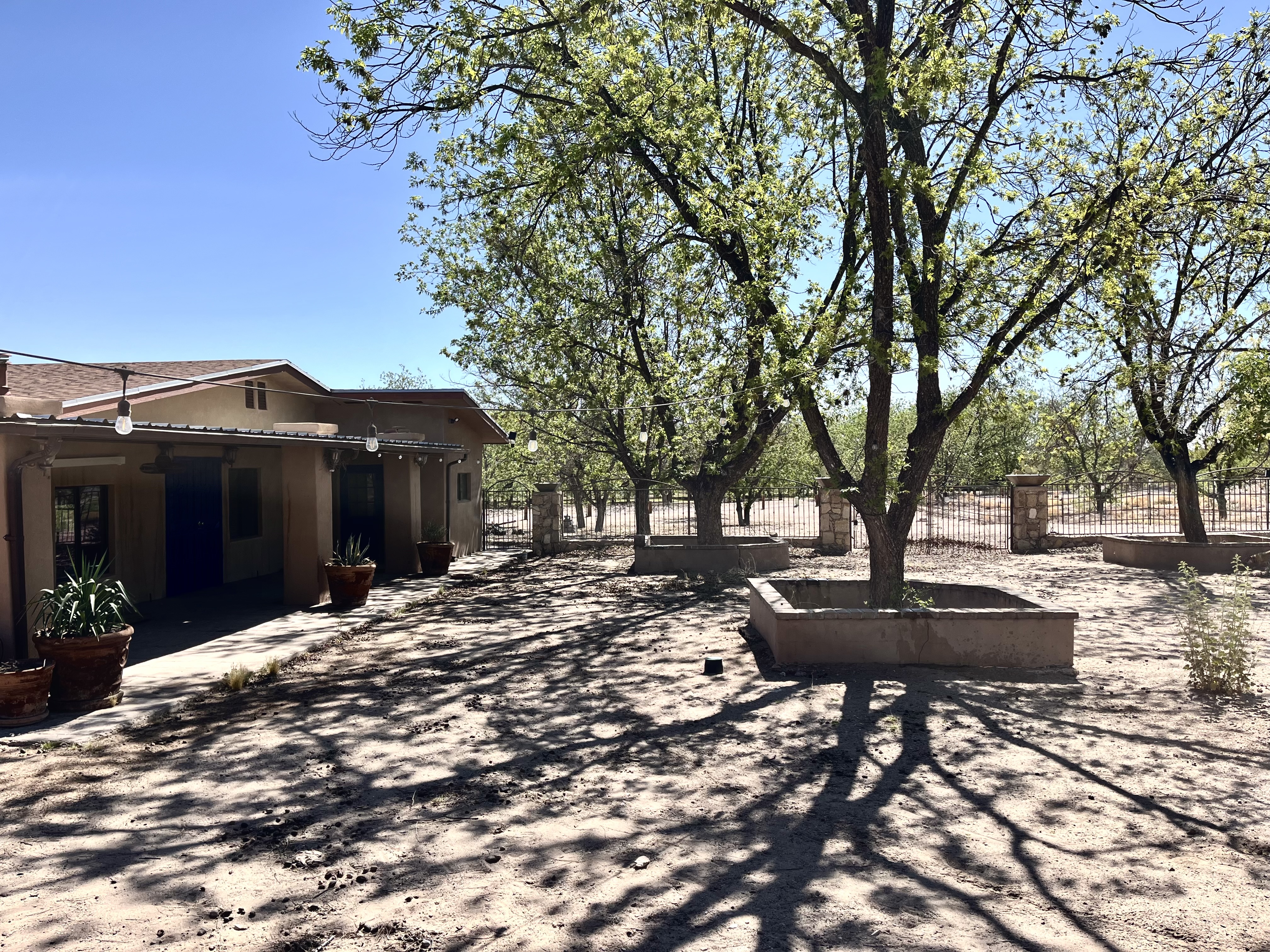 Guests staying in the Casita have access to the large, gated backyard, as well as the various gardens and seating areas on the two-acre property. The backyard has four pecan trees and ample space for people and pets. There is outdoor seating in the garden courtyard off the Casita entrance. The courtyard is gated and private, with native New Mexico plants.